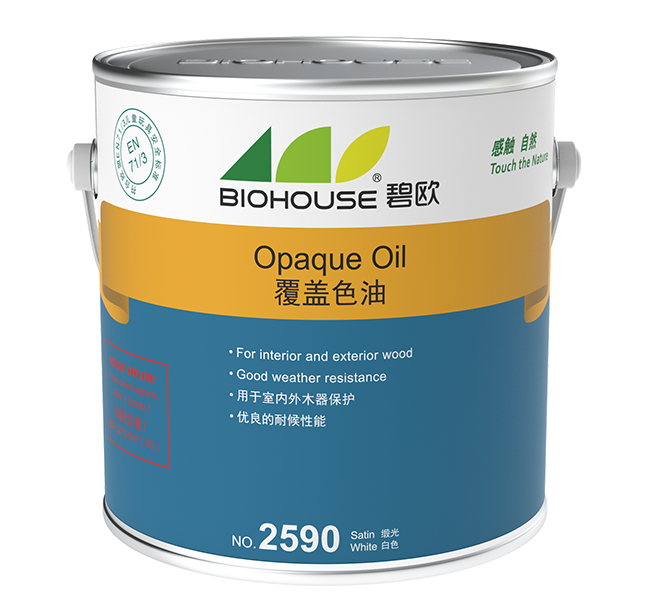 Biohouse Opaque Oil Tinting Base is an open-pore wood paint based on plant oil. It is colorless and not supposed to be used without tinting. When tinted with Biohouse Tinting Color, it can achieve opaque or semiopaque coating by brushing or spraying. For white opaque effect, please use Biohouse Opaque Oil White 2590 directly. The tinted Opaque Oil is suitable for both indoor and outdoor wooden furniture, door, panel and wall cladding. It is excellent in weather resistance. The oil penetrates into wood and forms micro-porous, water repellent surface. The surface will not crack, peel, or blister.